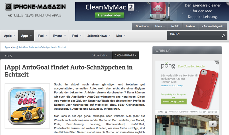 Die App “AutoGoal” kostet im App-Store 1,79 Euro, ist 3,1 MB groß und erfordert mindestens