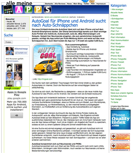 Denn anstatt mühsam alle Angebots-Seiten zu durchforsten, übernimmt “AutoGoal” die Suche für den User. Wer seine gewünschten Such-Kriterien eintippt, bekommt umgehend eine Übersicht über alle