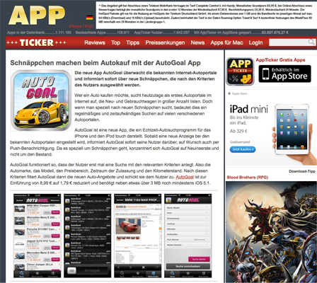 Mit der AutoGoal App findet ihr im Handumdrehen die besten Angebote zu eurem Traumauto. Wer gerne unterwegs mit seinem iPhone oder iPad nach KFZ-Schnäppchen Ausschau hält, ist mit der AutoGoal App genau richtig bedient.